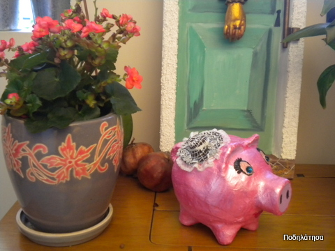 Τότε πάνω στο τραπέζι εμφανίστηκαν διάφορα άλλα υλικά... μπογιές... πινέλα... πηλός... χάντρες... κορδέλες... για να στολίσουν το μικρό γουρουνάκι!!!